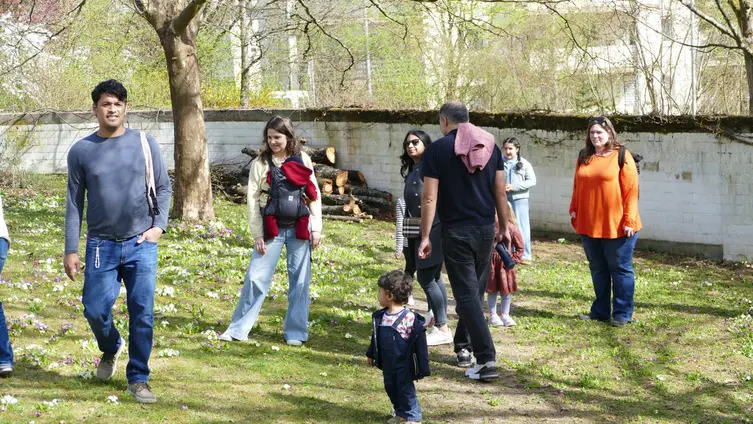 Kaum war die Geschichte zu Ende erzählt, stürmten die kleinen Entdecker auf die Wiese hinter dem Gemeindezentrum, den Blick konzentriert suchend auf den Boden gerichtet. Auf der Wiese, unter Büschen oder an Baumwurzeln waren nämlich 60 bunte Ostereier versteckt – ausreichend, dass jedes Kind drei Eier suchen konnte. Und sie wurden alle in Rekordzeit gefunden. Die Freude bei allen war groß.